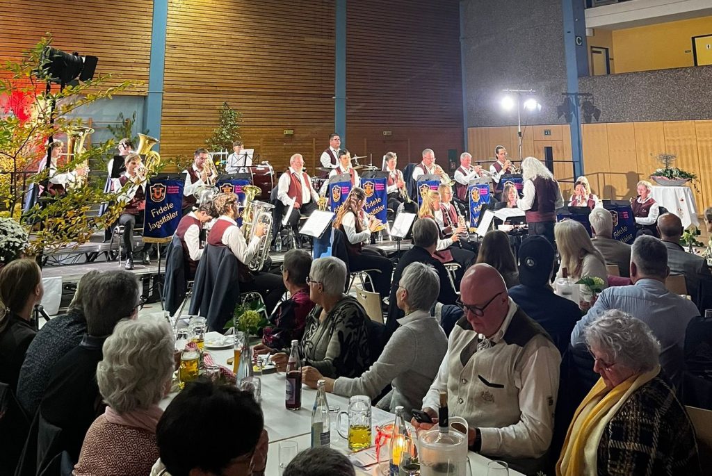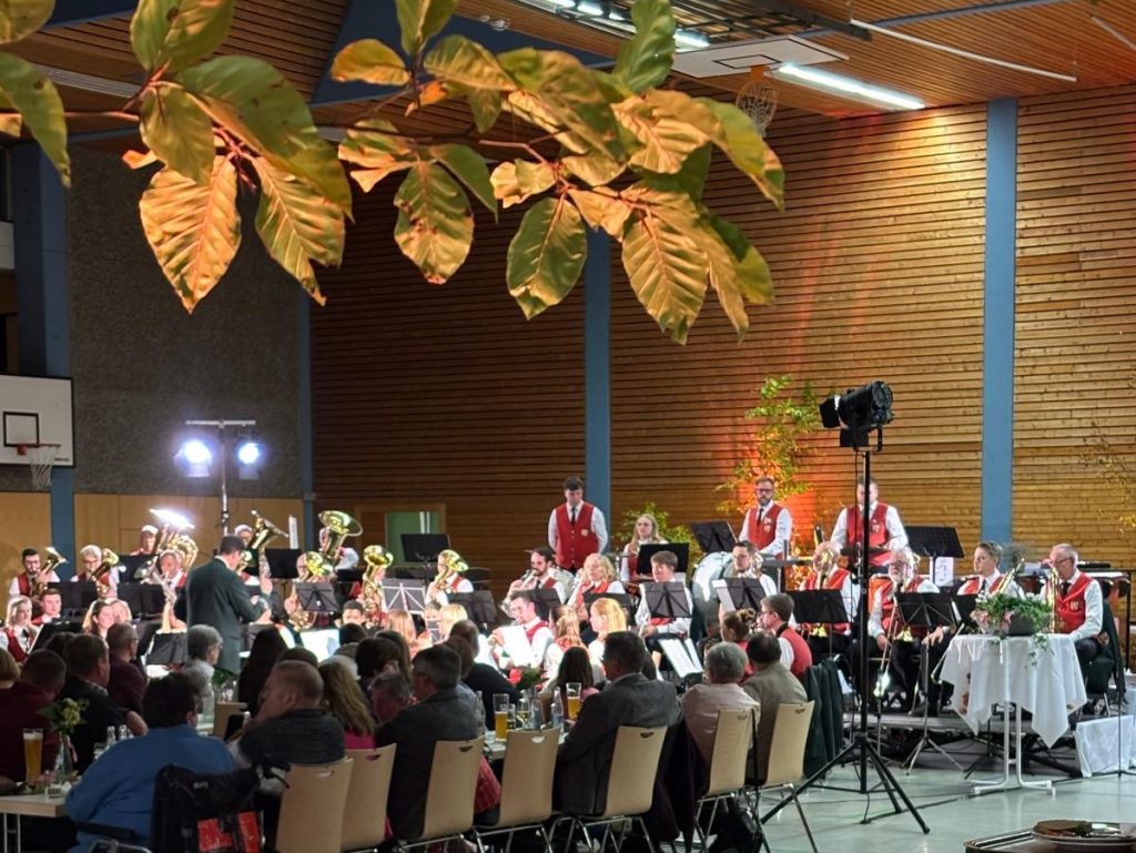 Zur Blasmusikarena waren rund 250 Gäste der Einladung des Musikverein Unterkochen und dem Motto „mittendrin in der Musik“ gefolgt, um ein Feuerwerk der Blasmusik zu erleben. Mit dem Wechselspiel der beiden Orchester von zwei Bühnen wurde das Publikum von allen Seiten bespielt. Bei der Vielfalt der Blasmusik mit Marsch, Polka, Schlager und Popmusik wurde vom gastgebenden Musikverein aus Unterkochen mit seinem Dirigenten Werner Wohlfahrt sowie dem Gastverein, den „fidelen Jagsttälern“ aus Rindelbach unter der Leitung von Wendelin Dauser eine gelungene Mischung aus traditioneller und moderner Musik dargeboten. Das musikalische Programm war generationenübergreifend und richtete sich an alle Altersklassen. Die Kombination aus Musik und der herbstlich dekorierte Sporthalle mit dem kulinarischen Angebot sorgte für einen kurzweiligen unterhaltsamen Abend, bei dem das Publikum nicht mit Beifall sparte. Der Musikverein Unterkochen setzte mit dem neuen Konzept ein Zeichen für lebendige Blasmusikkultur in der Region.